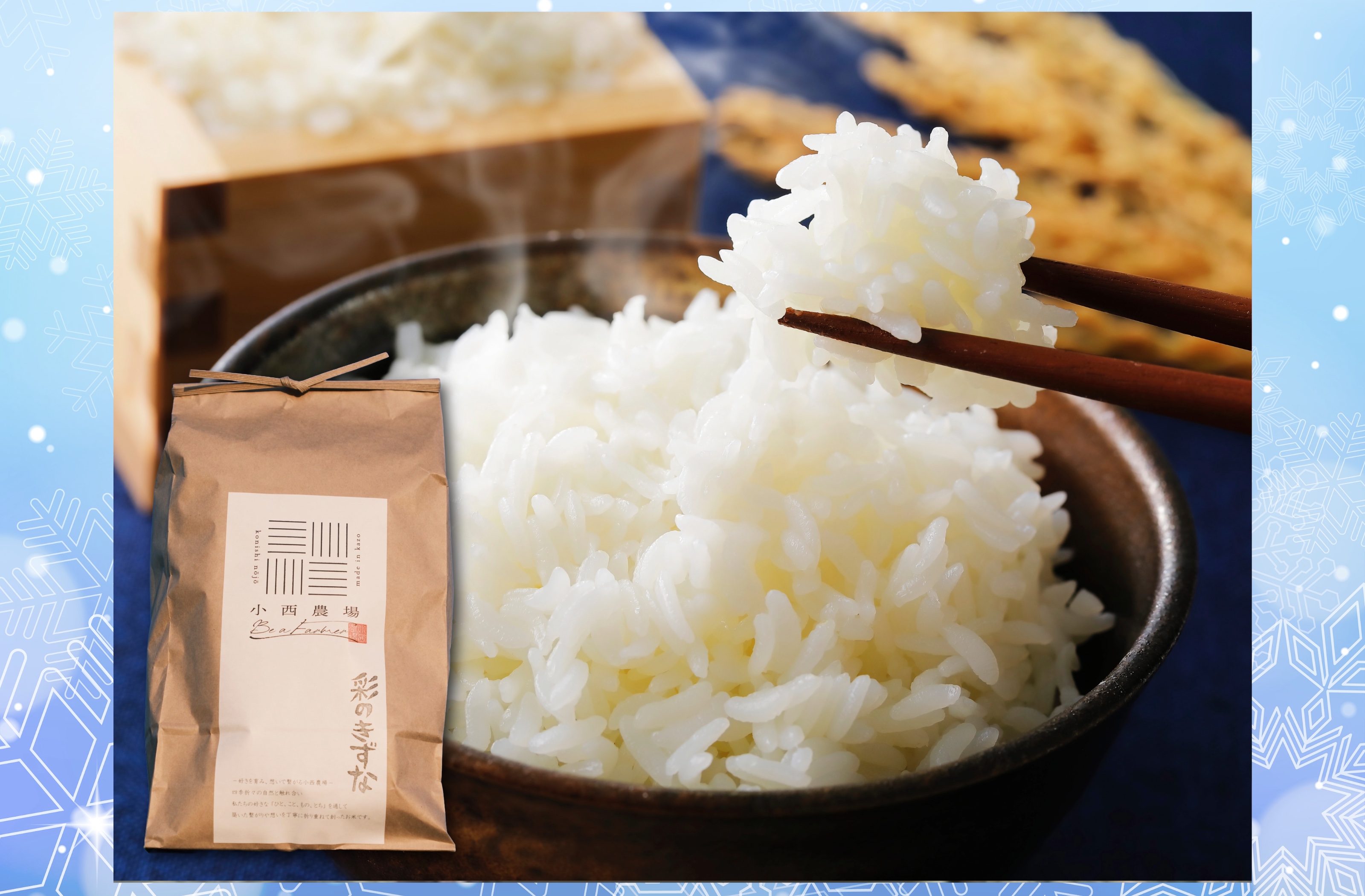 『彩のきずな』は、米の食味ランキングで何度も「特A」評価を獲得している美味しいお米です。甘みと旨みのバランスがよく、もっちりとした食感。自然に寄り添いながらお米づくりに取り組む『小西農場』からお届けします。